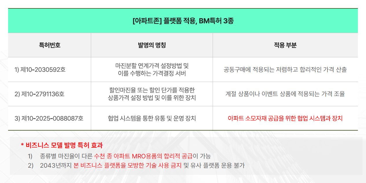 비즈니스모델 발명특허 3종이 적용된 아파트 MRO용품 전문 공급 플랫폼 입니다.